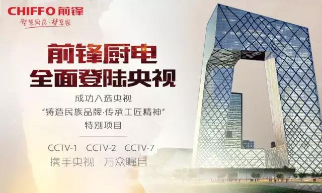 前鋒廚電強(qiáng)勢(shì)登陸央視,CCTV-1、CCTV-2、CCTV-7將全面開(kāi)播