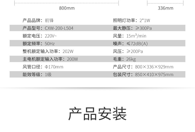 前鋒平板雙吸油煙機(jī)L504+